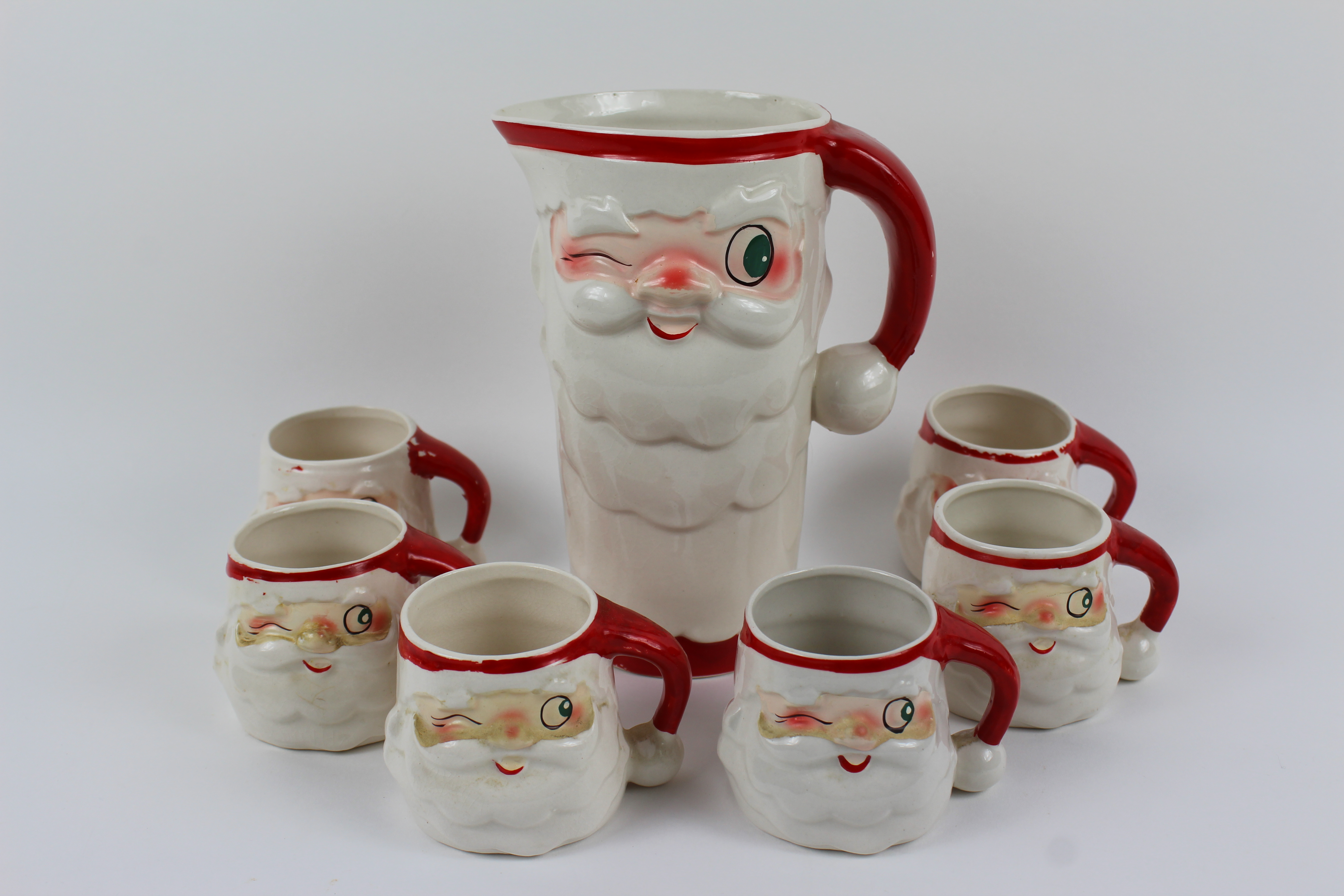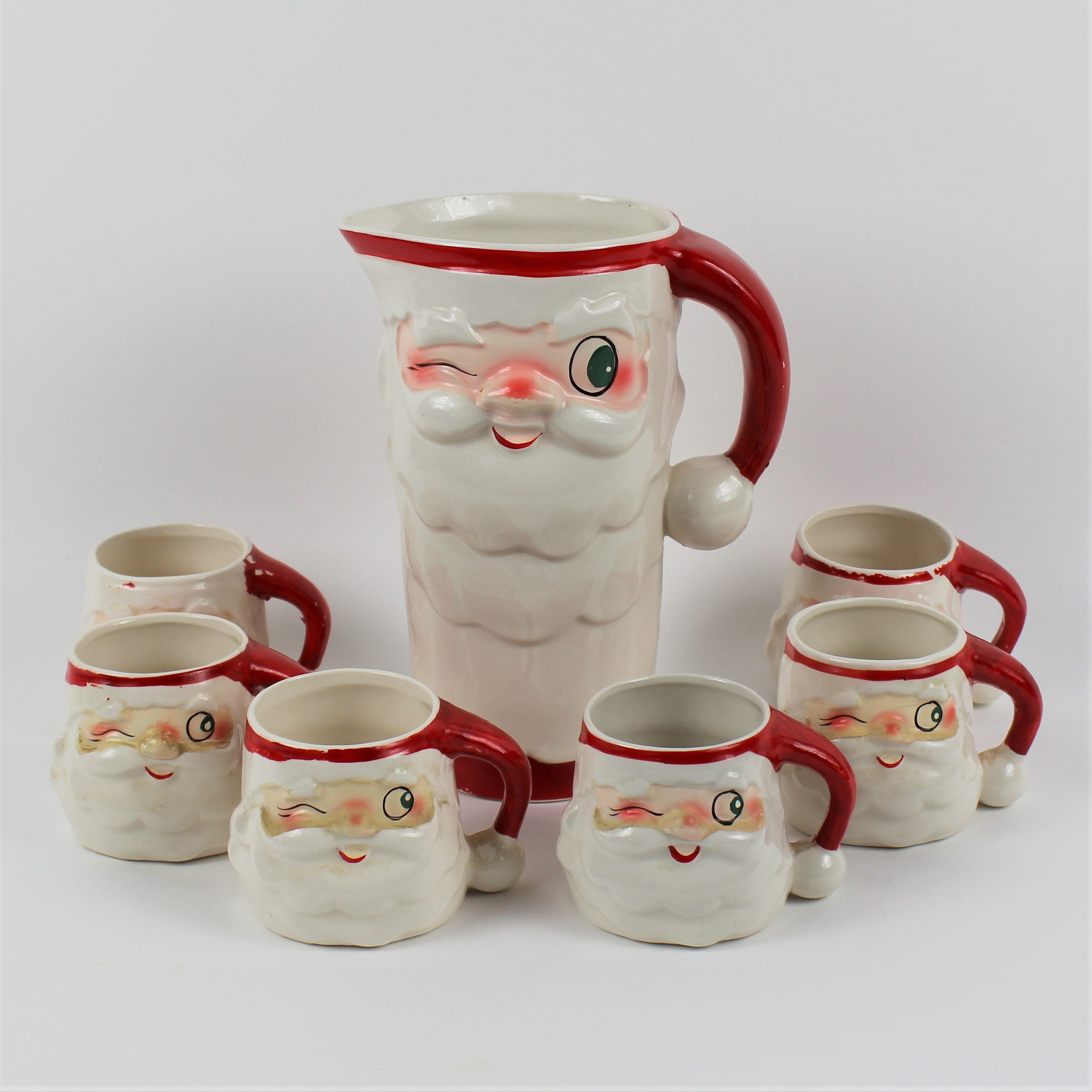 Holt Howard "Winking Santa" Pitcher & Cups | EBTH from ebth-com-production.imgix.net There are 342 holt howard mugs for sale on etsy, and they cost $41.63 on average. Here's a url with info on that hh. Best match ending newest most bids. Check out our holt howard mugs selection for the very best in unique or custom, handmade pieces from our mugs shops. The pattern is blue and. 60cc creative handmade ceramic coarse pottery espresso coffee cup with saucer kit mini drinkware office milk yogurt mug art gift. Find unique mug sets, ceramic mugs and much more. .howard ceramic christmas holly berry, price: